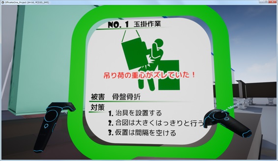 安全衛生教育のコンテンツを体験型VR(バーチャル・リアリティー)教材とした。