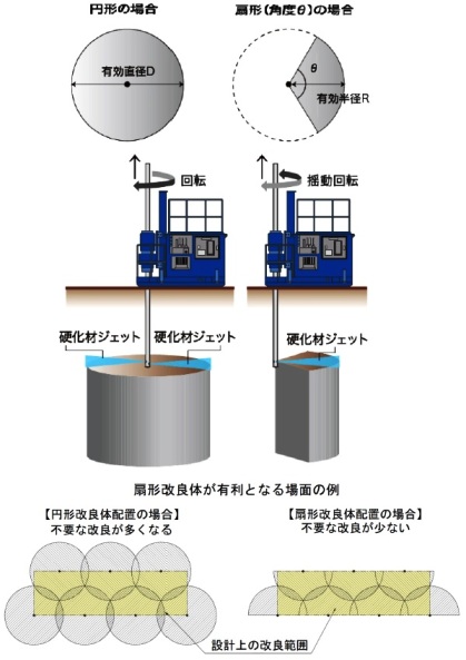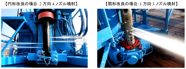 ・1方向1ノズル噴射から2方向(扇状改良の場合は1方向)複数ノズル同時噴射に変えた。