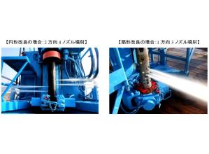 ・2方向(扇状改良の場合は1 方向)複数ノズル同時噴射に変えたことにより、