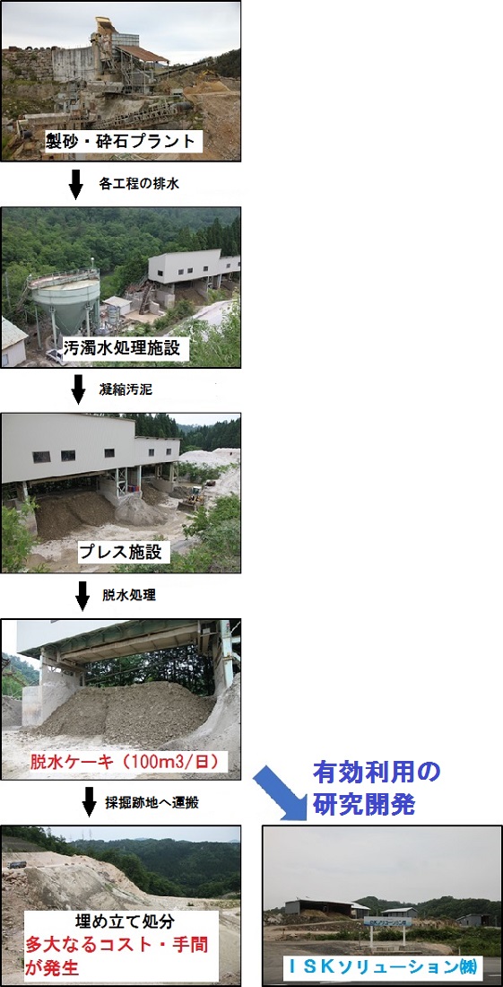 ・加工砂・砕石工場で発生する汚泥(脱水ケーキ)の産業廃棄物がリサイクルされる。