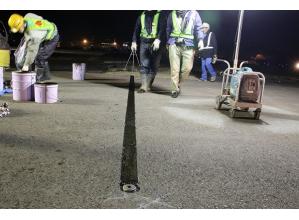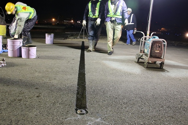 ・使用する材料を、加熱タイプのグースアスファルト混合物から、常温で施工可能な流し込みタイプのアスファルト混合物に変えた。