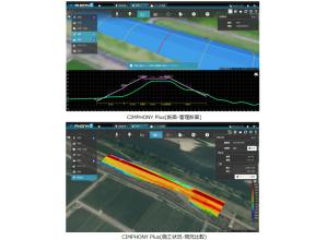 ・設計と点群を用いて、管理断面・任意断面での進捗状況確認、現況比較による差分土量での進捗状況確認