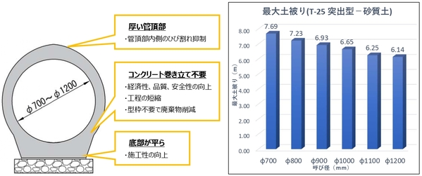・管頂部厚が厚く、管頂部内側に発生するひび割れが入りにくい。