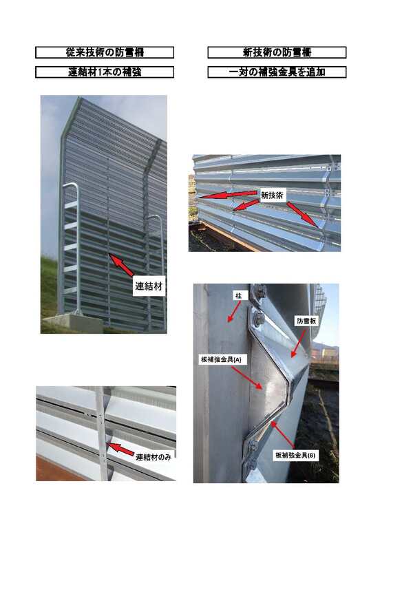 ・板補強金具を取り付けたことにより、防雪板の強度が増し、品質が向上する。