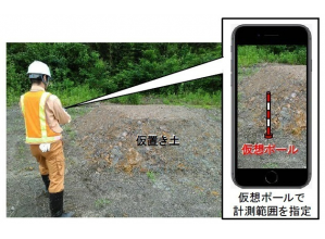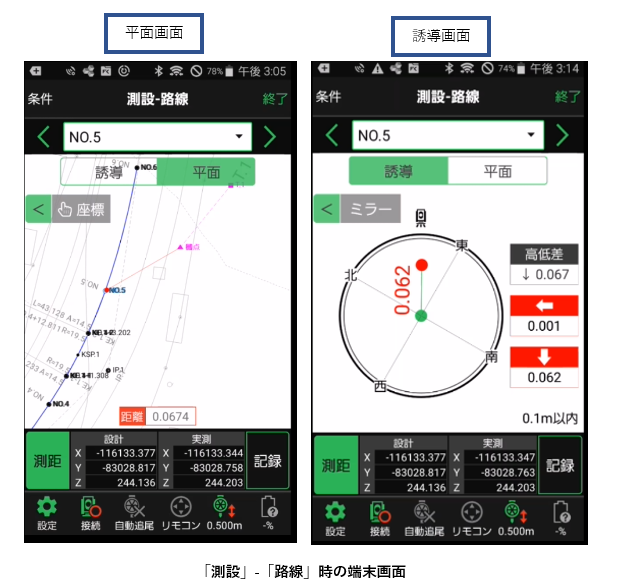 ・「座標、図面、3D設計データ」を活用する事によって事前計算が不要であり任意位置での丁張設置、設計実測値の差異の確認が行える。