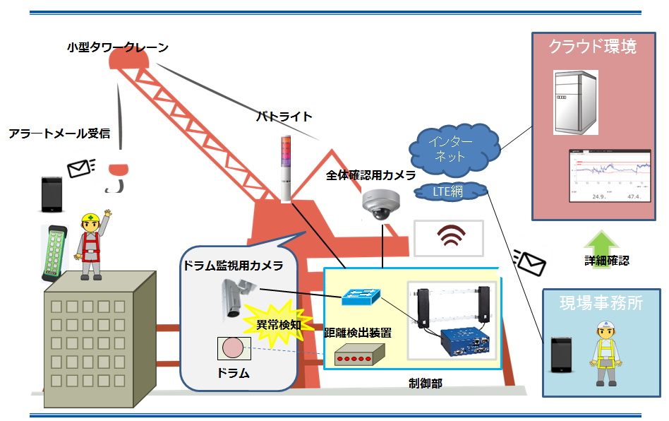 ・インターネットを介した様々なデバイスで変位及びカメラ映像を現地に赴かずとも確認できるため施工性の向上。