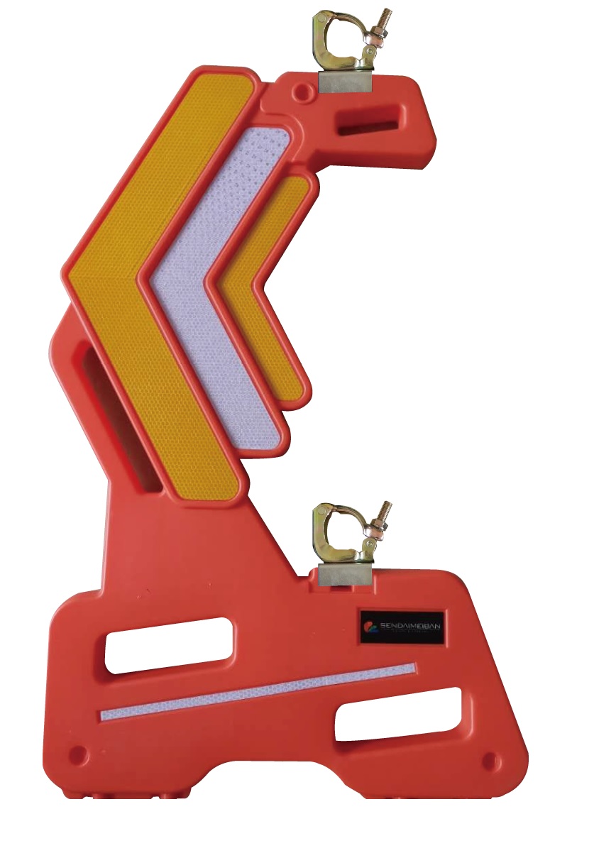 2)視線誘導の反射シートの位置を上方へ配置が可能になり、且つ表示面積を大幅に拡大する事ができたため、視認性が良くなり、追突リスクが低下するため、安全性の向上が図れる。