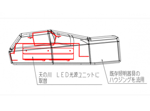 光源を高輝度LEDとし、既存照明器具を流用し、内部ユニットのみの交換とした。