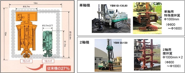 ・撹拌翼を現場ニーズに応じて、単軸および2軸から選択できることにより、施工効率の向上が期待できる。