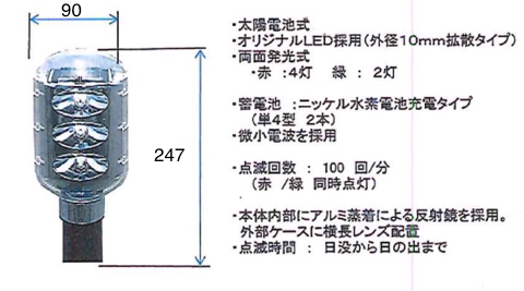 ・無日照での連続点灯時間を120時間とし、従来の平均だった90時間から約25%の向上となっている。(電池満充電時)
