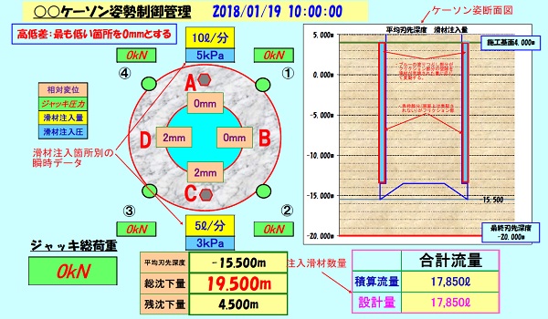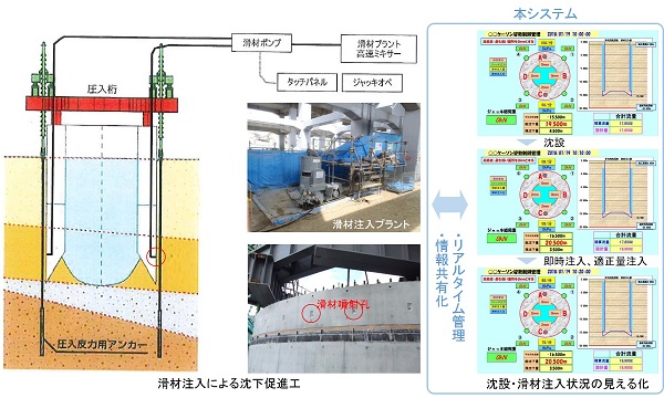 ・滑材注入管理方法を、作業員の判断から、ケーソン沈設状況と滑材注入状況を連動させた見える化に変えた。