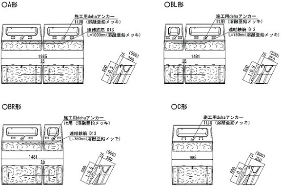 ・従来の人力施工であったブロックを大型化し、機械施工に対応した。