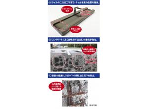 PCa板の製造段階にステンレス製タイルはく落防止金具を使用してタイルを固定し、コンクリートを打...