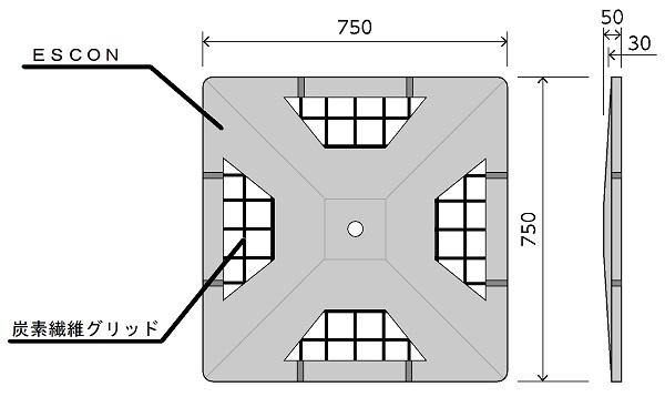 2)補強筋として炭素繊維グリッドを用いることで、鉄筋腐食などの要因による内部からの破壊が無いため、塩害地域など腐食環境が厳しい条件下でも使用できる。