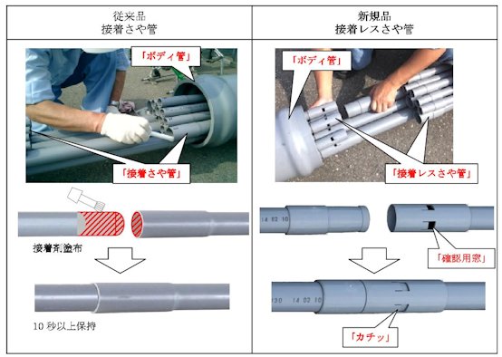 ・接着剤を使用して接合するさや管から、接着剤を使用しない機械的構造の継手を有するさや管