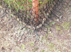 ネットを用いて小動物の侵入を防止する技術。