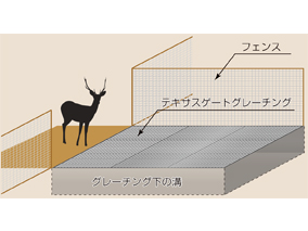 道路に使用可能で動物(シカ、イノシシ)の侵入を防止する為に開発した、最適なグレーチング構造の防護柵。