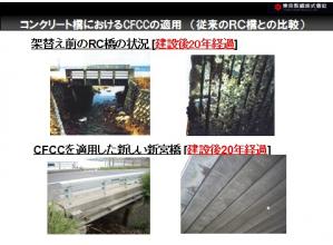 ・CFCCの価格は従来のPC鋼材に比べて高く、PC構造物としての初期建設コストが高くなるが、長期間使用しようとするPC構造物では、30年以上経過すると、ライフサイクルコストは逆転する。