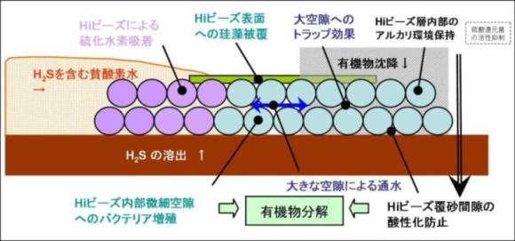 ・Hiビーズは、硫化物イオンの溶出抑制といった化学的効果を併せ持つ材料である。