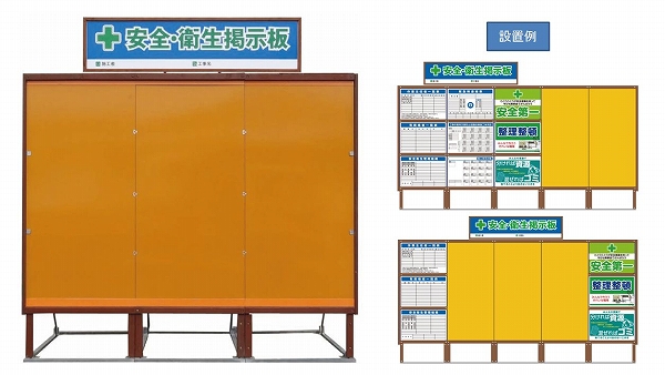 ・掲示パネルのレールが取り外し可能で、完成予想図など工事現場で要する安全掲示板以外の用途で使用可能(その他「完成予想図」写真参照)