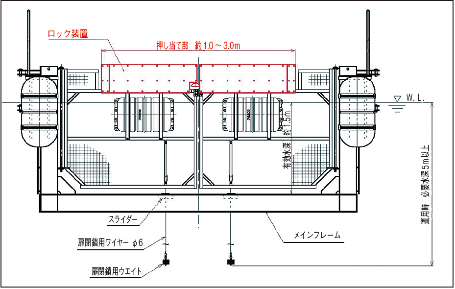 ・船による押し開きのみで通過が可能なため、運用時に船上の作業員が直接手を触れる必要が無くなったので、ゲート通過時の安全性および作業性の向上が期待できる。