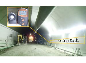 インバーター内蔵型基板と高輝度LED素子を採用し、従来のシリンダーライトと同等な消費電力で、シリンダーライト以上の照度を実現できた。また、当該帯ライトを最大100mまで延伸でき、トンネル工事など長距離線形構造物の照明に便利に対応できるようになった。
