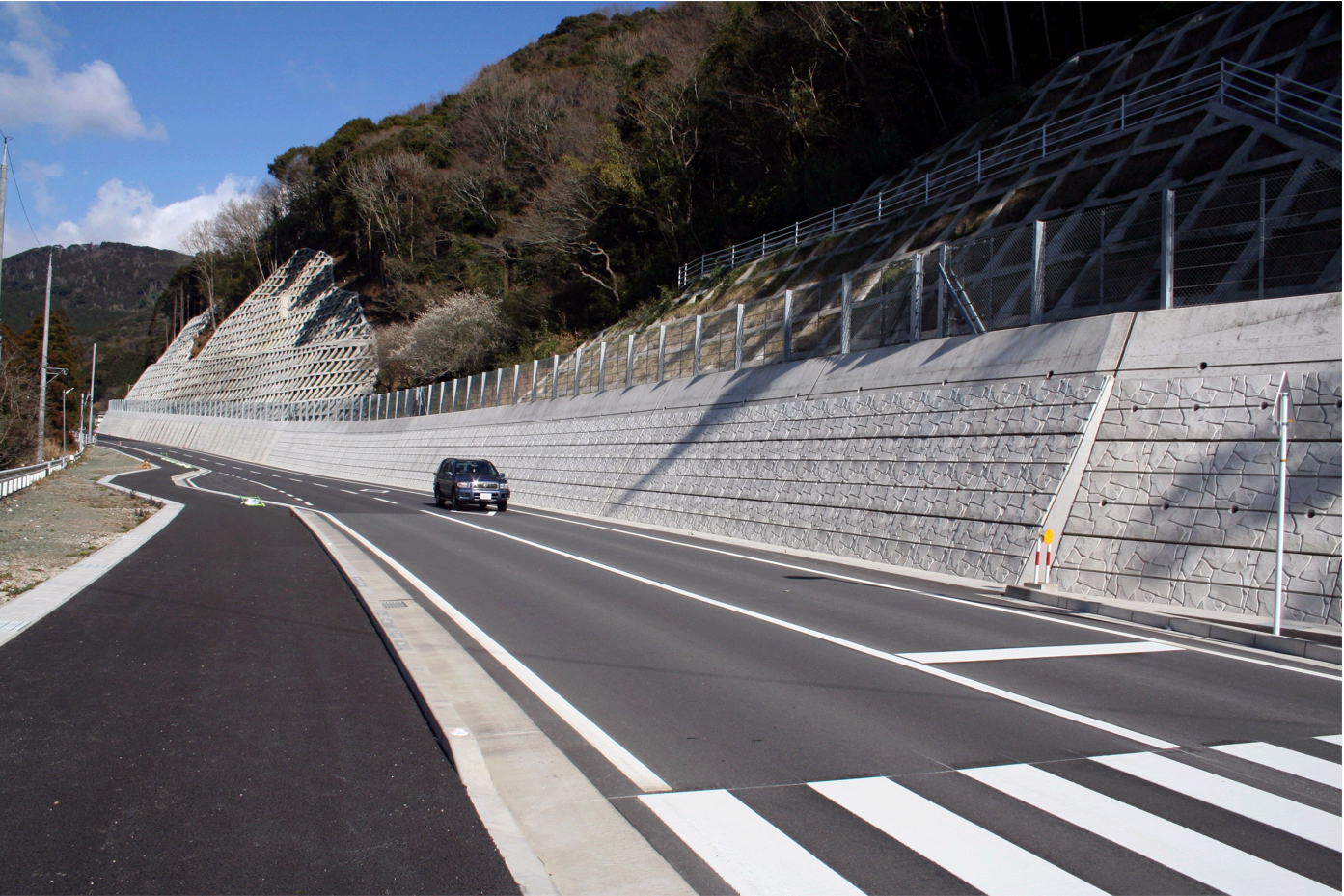 鉄筋コンクリートで一体化する擁壁のため、もたれ式擁壁と同等の構造として扱うことができる。
