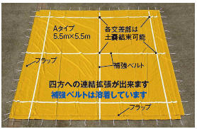 ・ターポリンシートにフックベルト(ターポリン)を溶着し、強度の高いシートとした。