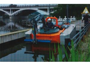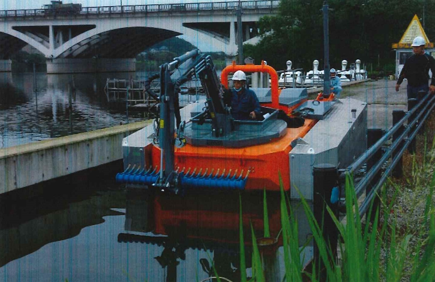 従来の作業員による水中、潜水での水草駆除作業から、作業船による船上からの機械操作による作業とした。