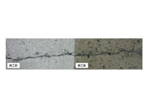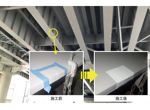 プライマーと補強層をエポキシ樹脂系プライマー+エポキシ樹脂系接着剤+ガラスクロスから、速乾性特殊透明アクリルシリコーン系樹脂プライマー+高耐候性特殊透明ポリウレア樹脂に変えた。