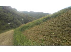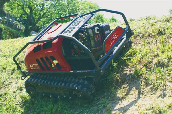 ・無線遠隔操作による除草作業を可能にしたことにより、急傾斜面での除草作業時に作業員が転倒・滑落、刃の跳ね返り等による事故に遭うことがなく、更に騒音や振動、刈草くず、土埃等の悪影響を受けないため、安全且つ楽に草刈作業を行うことができる。