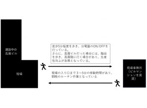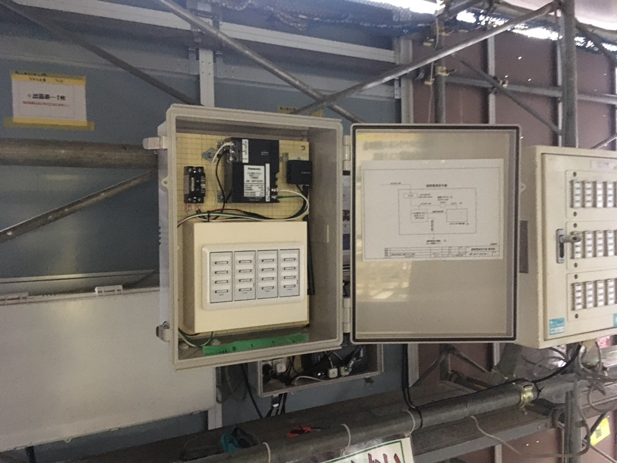 手動操作による仮設分電盤から遠隔操作ができる仮設分電盤に変えた。
