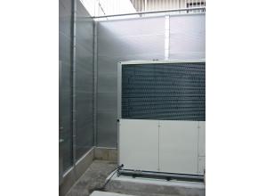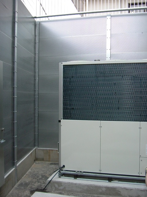 一般的な吸音板や遮音板から、多空孔のアルミニウム焼結板を用いた吸音板に変えた。