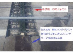 ・橋梁用鋼製伸縮装置の取替補修において、鋼フィンガージョイントの設置からコンパクトな既製品ジョイントを設置する技術に変えたことにより、本体製作の際オーダーメイドの平板からの溶接加工から山形鋼を活用し、規格化かつ量産化できることで安価になり経済性の向上が図れる。