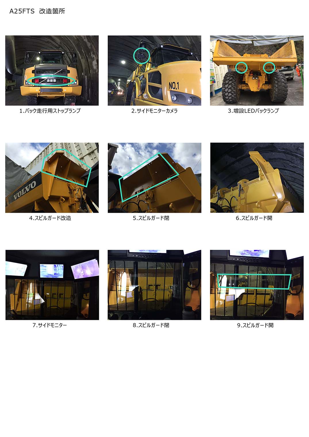 ・後ろ向きでハンドル操作時(後進時)に、ベッセルのスピルガードが開くため、後方視界が確保できバック走行が容易となり施工性向上、並びに挟まれ事故等が軽減可能となり安全性向上