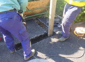 狭い場所でも安全かつ効率的に行うことが出来るため、重機掘削前の試掘工(埋設物調査工)や小型構造物の基礎掘削工などの需要が高い。