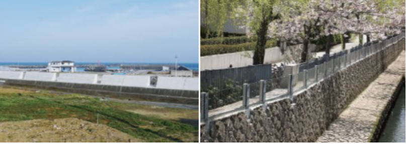 コンクリートや鋼製の止水板と比べ、アクリル止水パネルは透明な材料であるため、災害時の海や川の状況を確認することができる。