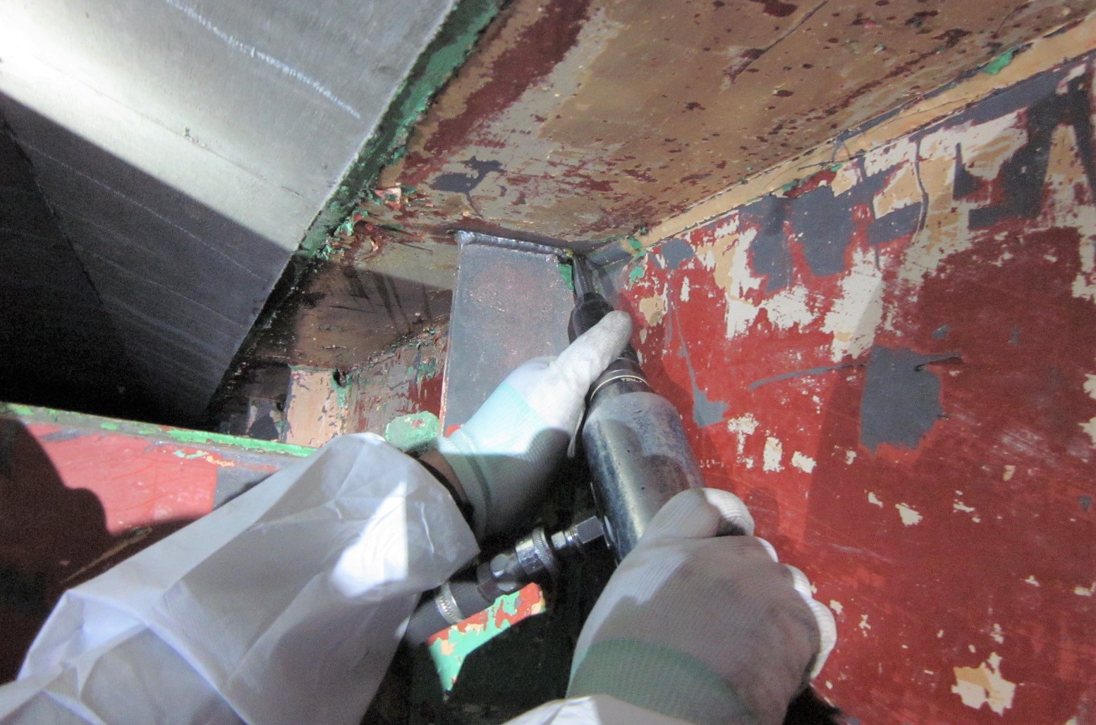 1)類似工法では作業スペースや作業姿勢の確保が出来ず、施工が困難であったスカラップ部等の狭隘部においても、IPニードルピンを導入することで施工を可能とした点。