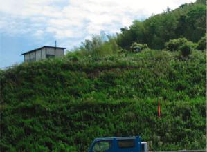 ・建設発生木材をのり面緑化工の生育基盤として利用し、造成工事等のゼロエミッションに貢献