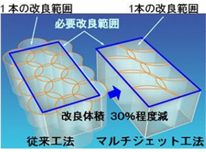 噴射攪拌効率の向上により、改良体積当たりの噴射量を少なくし、排泥発生量を低減する。
