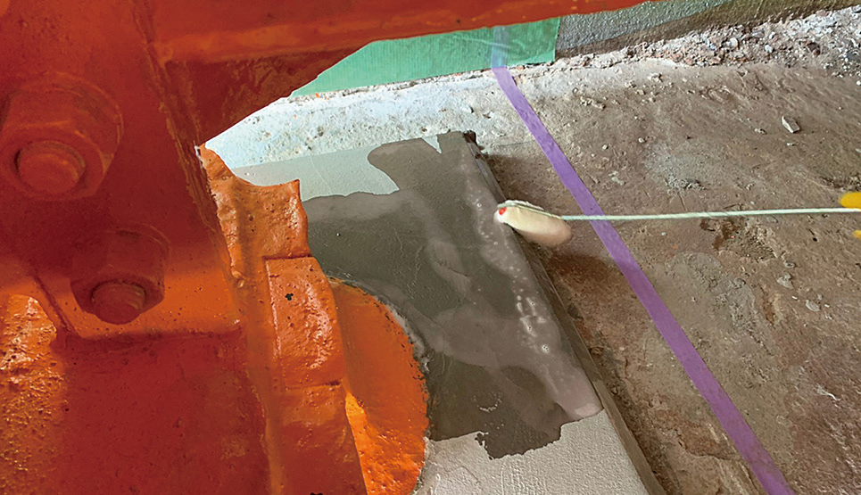 ・鋼材面の他にコンクリート面やゴム面も一体化に塗膜を被覆する事が可能となり防食機能が向上した。