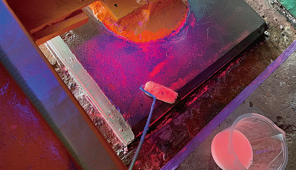 ③ 塗布したことをブラックライトで確認できるため、施工管理が容易。1液型塗料のため、ヒューマンエラーも抑制。