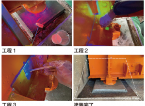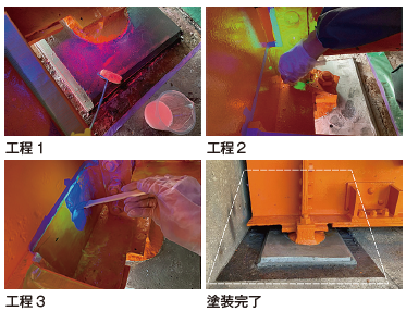 ・塗替え塗装時の素地調整工が3種ケレン程度の処理で施工が可能となった為、狭隘部や隙間の施工が容易に行えるようになったのでブラスト機や溶射装置等の特殊機械を使用しなくても良くなった。