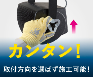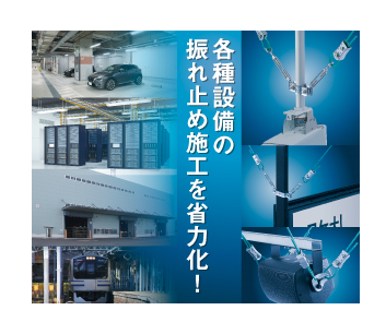 ネットワークカメラは監視、記録上、振動による揺れを抑止する必要がある。また、誘導灯、電光掲示板、スピーカーなど様々な器具の振れ止めにも最適。この他、地下駐車場、サーバールーム、工場、倉庫、駅ホームなどで用いられる様々な機器に活用可能。