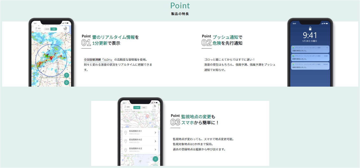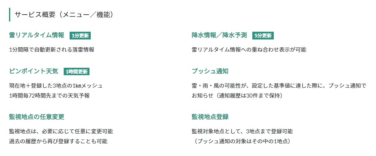 ■プッシュ通知による情報取得により、落雷や大雨の危険情報の迅速な取得が可能となり安全性の向上が図れる。