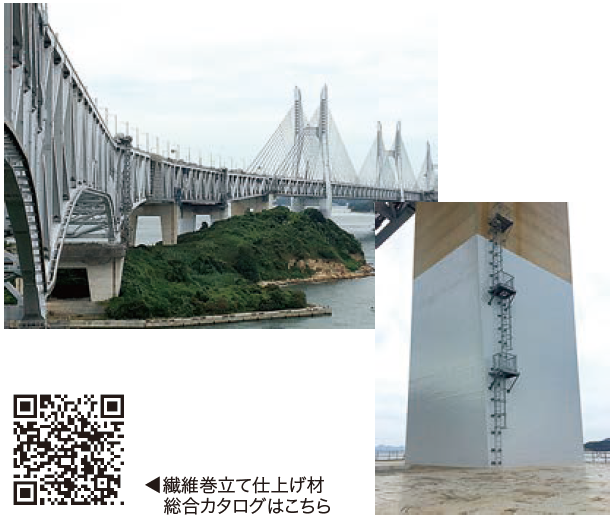 繊維シート貼付け後に表面に1㎜または10㎜厚で表面仕上げを行う工法。