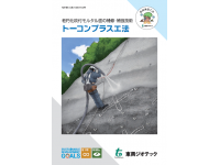 従来、老朽化した吹付モルタル・コンクリート面の対策は、既設吹付面をはつり取り、背面地山の風化部を除去した後に、再度吹き付けを行う手法がとられていたが、はつり作業や風化した地山の整形作業には危険が伴うほか、交通規制や大量の産業廃棄物が発生するなどの問題があった。トーコンプラス工法は、原則として既設吹付面をはつり取ることなく、補修・補強する技術(増厚工)であり、地山の風化深さに応じて、補強鉄筋タイプ(風化深さ1m以下まで)、ロックボルトタイプ(風化深さ1~3m程度まで)を選定することができる。また、打設した補強鉄筋の頭部に設置するフレームワッシャーにより、地山・既設吹付と新規モルタル吹付を一体化するため、一般的な増厚工より少ない補強鉄筋および付着部材(ファスナーボルト)での施工が可能となり、工期の短縮や経済性の向上がはかれる。