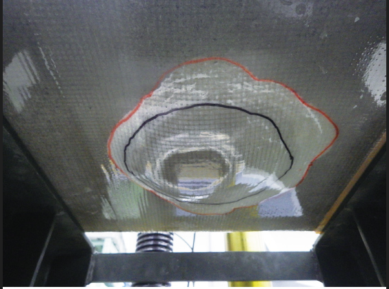 使用する接着剤は施工後透明になる為、コンクリートに発生した変状を目視確認できる。