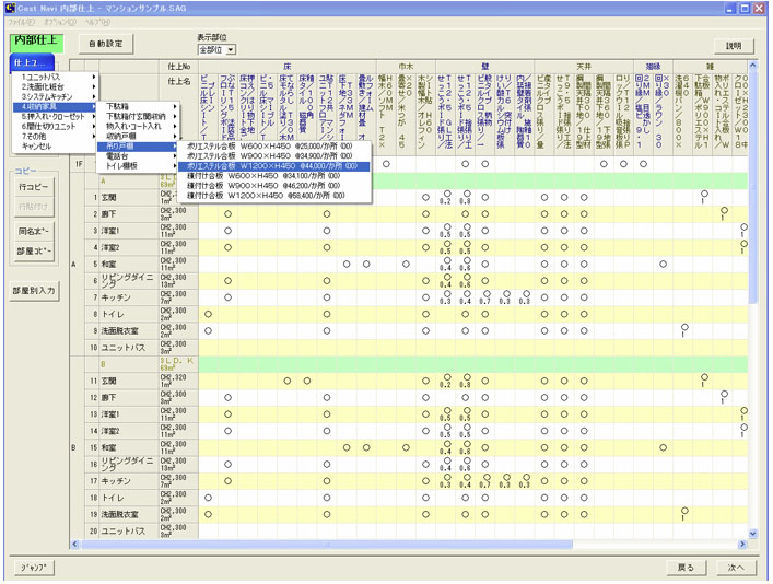 内外装をリストより選択(ユーザー独自の仕上材も指定可能)