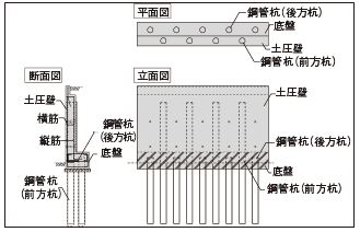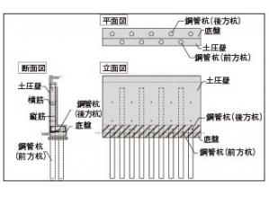 土圧壁内部に鋼管杭を埋め込む構造および鋼管杭の採用により以下の効果が期待できる。